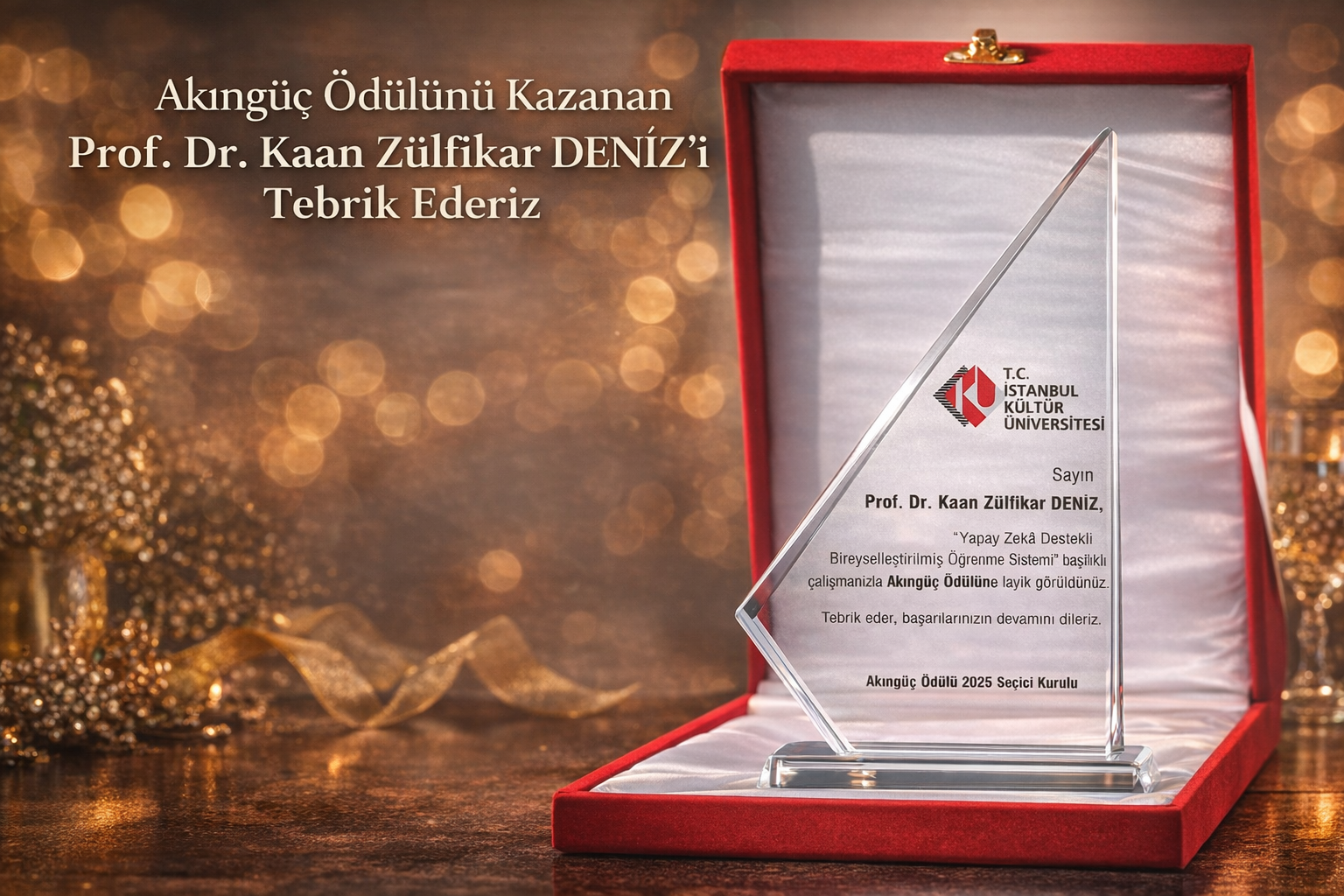Yapay Zekâ Destekli Bireyselleştirilmiş Öğrenme Sistemi ile T.C. İstanbul Kültür Üniversitesi Akıngüç Ödülü 2025 Seçici Kurulu tarafından birincilik ödülüne layık görüldük. Tebrik eder, başarılarımızın devamını dileriz.