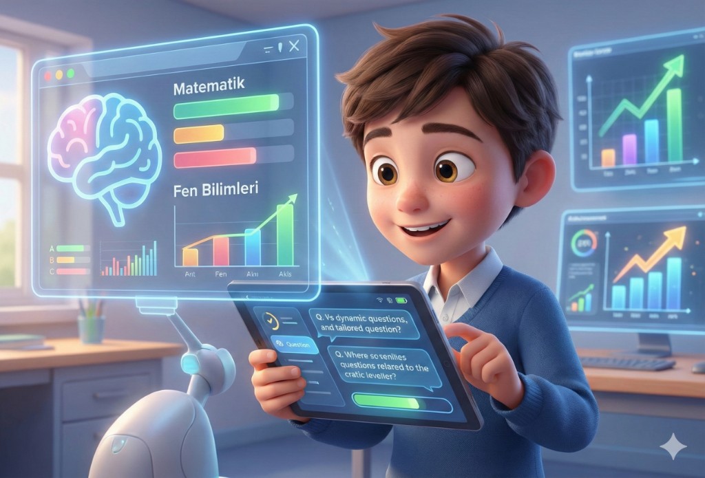 Yapay zeka destekli, bireyselleştirilmiş öğrenme platformu ile her öğrencinin kendi hızında ilerlemesini sağlıyoruz